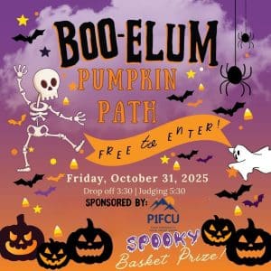 Help us light up downtown with uniquely carved, painted, and spooky Jack O’ Lanterns! Let’s add to the fun, this Boo-Elum! Bring a pumpkin and add it directly to the Pumpkin Path. Pumpkin Drop-off at Pioneer Coffee Lot before 3:30PM! Prizes will be awarded for adults and children! Click here to register.