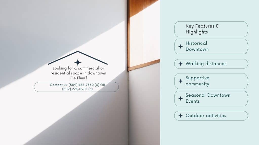 - For lease: 212 W Railroad Ave. Cle Elum, WA 98922 (formerly NW Roots Construction) – Apartment and Main Level Business Commercial Operative