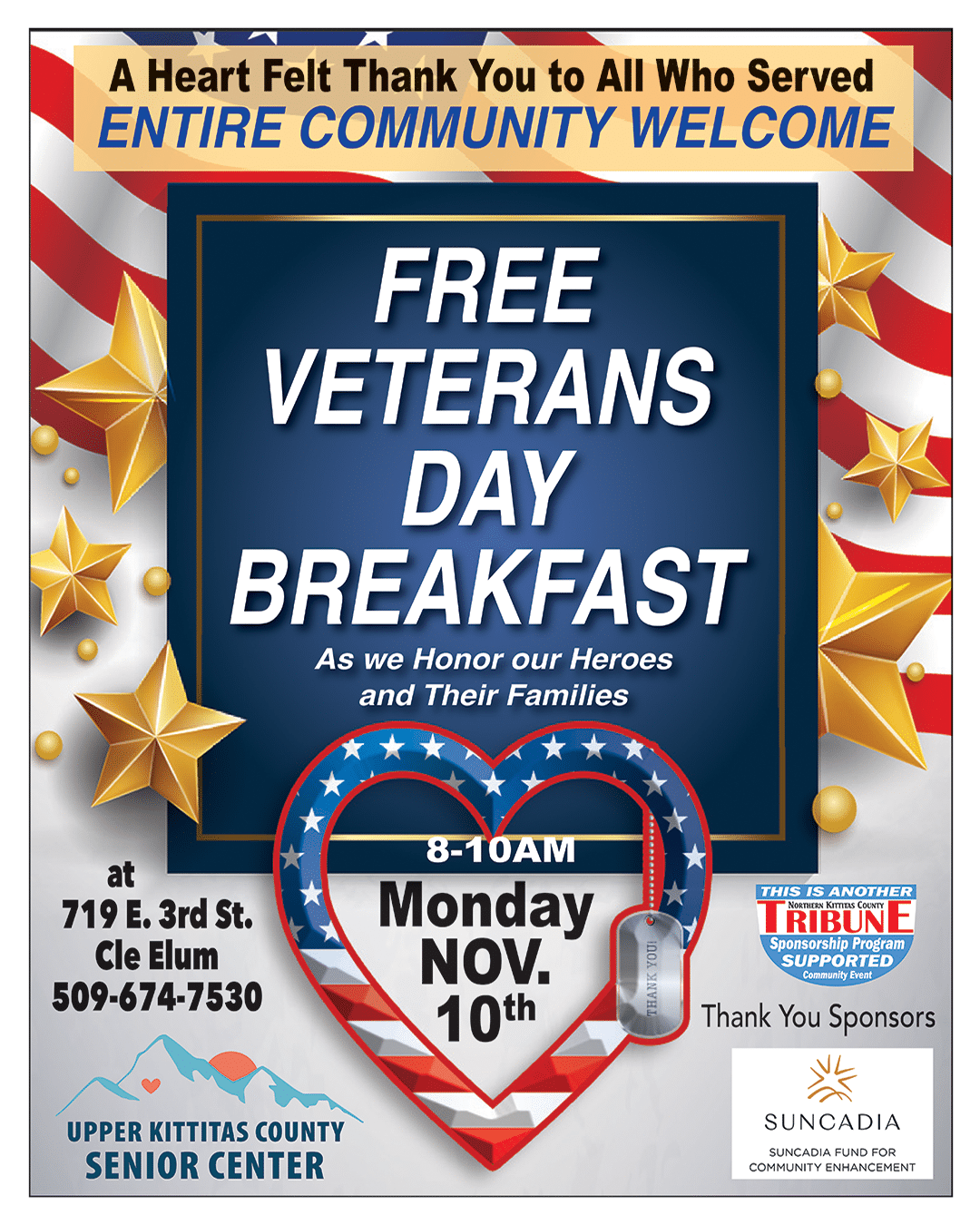 Please join us in honoring our heroes and their families. Free. Open to all. All ages are welcome. Come show your support of veterans sacrifices. Thank you sponsors: NKC Tribune, Military Vehicle Group, and Suncadia Fund for Community Enhancement.